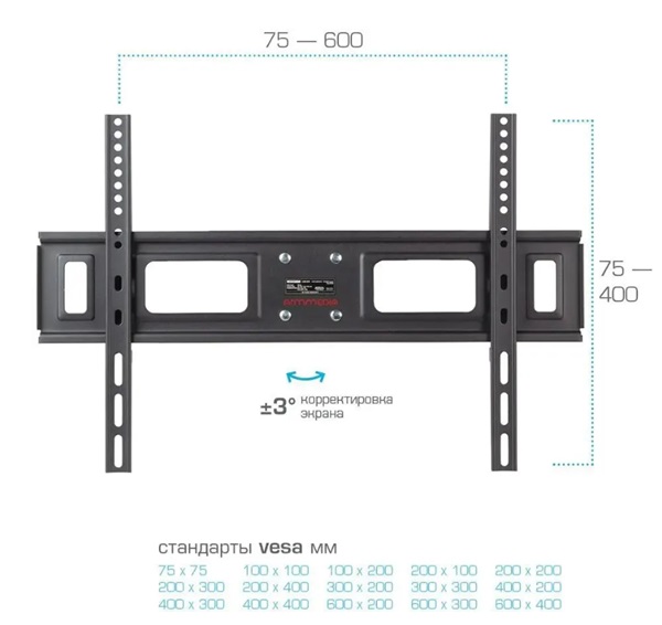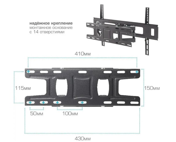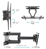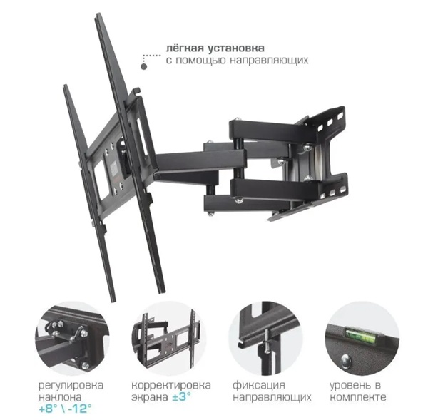 Устройство оснащено поворотно-выдвижным и наклонным механизмами. Кронштейн для телевизора ARM MEDIA LCD-418 способен выдерживать вес до 35 кг. Он хорошо впишется в любой интерьер за счет корпуса, окрашенного в универсальный черный цвет.