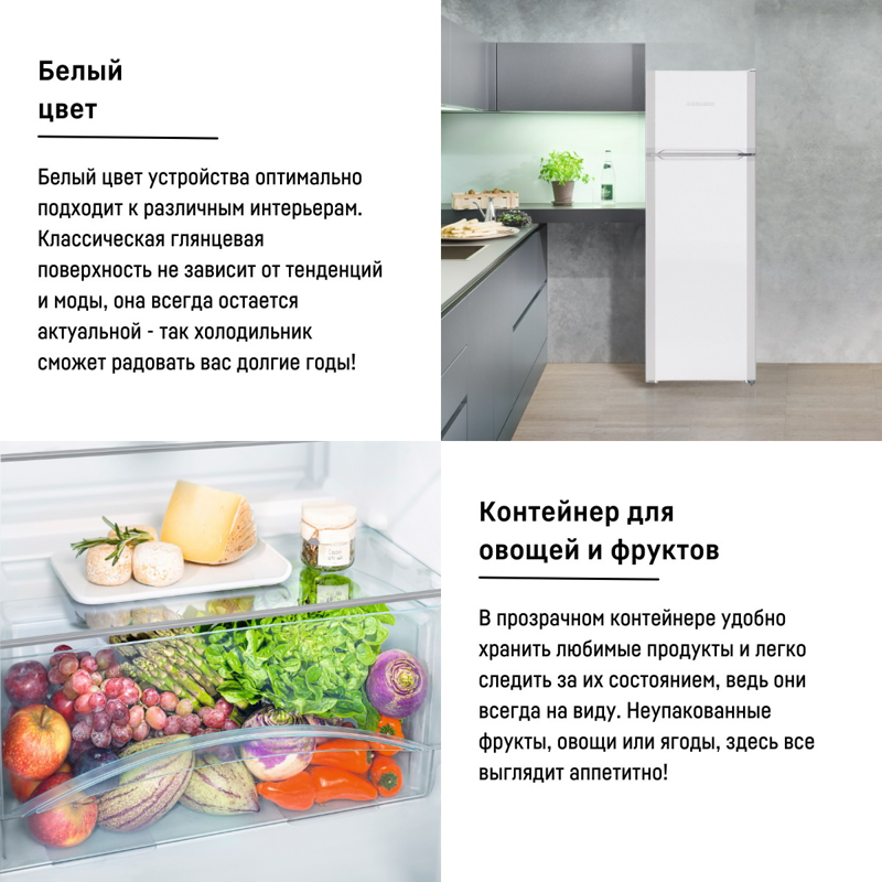 Тип: двухкамерный холодильник с морозильником сверху.