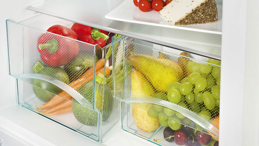 Дополнительные элементы: лоток для яиц, зона свежести для овощей и фруктов.