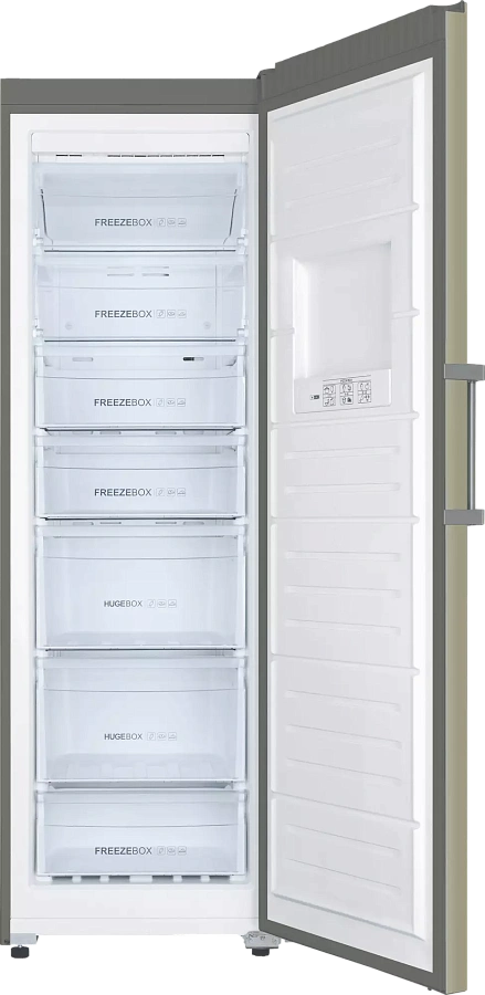 Новинка! Морозильная камера с функцией Total No Frost - убережет продукты от инея и наледи, а владельца — от ручного размораживания морозилки. Камера высотой 186,5см вмещает полезный объем до 262 л, на двери предусмотрен информативный LED-дисплей с возможностью регулировки температуры. Внутри морозильной камеры предусмотрены 5 боксов разного объема и две полки с крышками наверху. В двери находится разъем для хранения пиццы. Для удобства использования в морозильной камере предусмотрено верхнее LED-освещение. Цвет камеры - золотой, дверная ручка перенавешивается.
