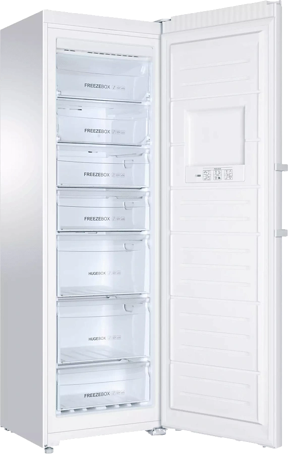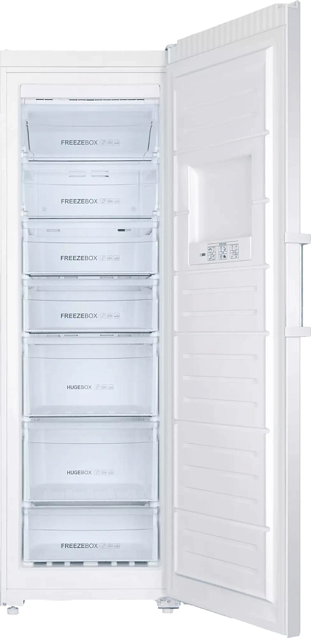 Новинка! Морозильная камера с функцией Total No Frost - убережет продукты от инея и наледи, а владельца — от ручного размораживания морозилки. Камера высотой 186,5см вмещает полезный объем до 262 л, на двери предусмотрен информативный LED-дисплей с возможностью регулировки температуры. Внутри морозильной камеры предусмотрены 5 боксов разного объема и две полки с крышками наверху. В двери находится разъем для хранения пиццы. Для удобства использования в морозильной камере предусмотрено верхнее LED-освещение. Цвет камеры - белый, дверная ручка перенавешивается.