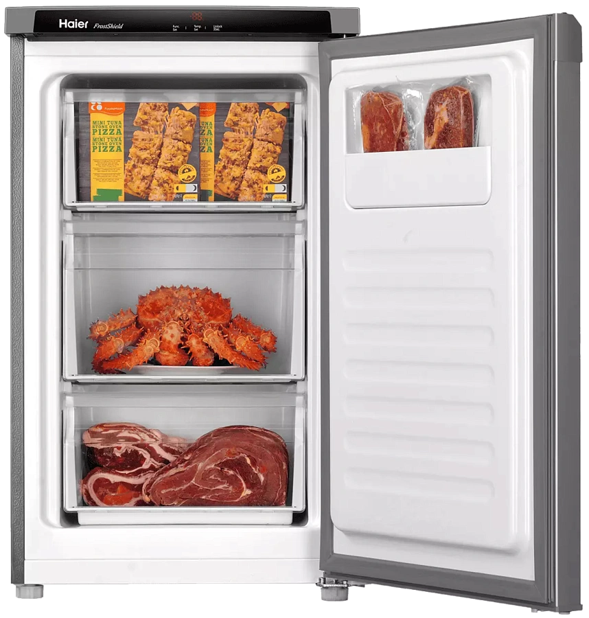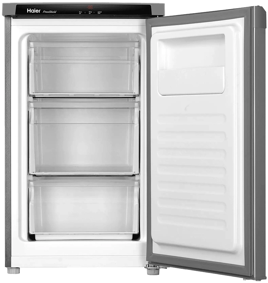 Морозильная камера HF-82SAA объемом 82 литра. Преимущества модели: три выдвижных ящика, низкий уровень шума (36 дБ (А)), технология охлаждения морозильной камеры Low frost, электронная система управления.
