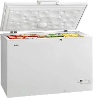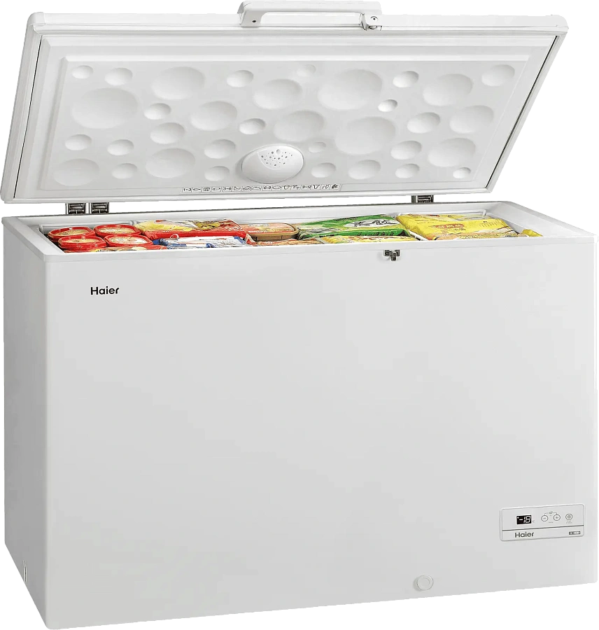 HAIER HCE429R — вместительный морозильный ларь, в котором можно одновременно хранить много продуктов. Объём ларя — 429 литров — оценят в больших семьях, где часто нужно иметь солидный запас продуктов. Дачникам такой ларь поможет сохранить урожай. Можно использовать его и в торговых точках. Наиболее востребованные продукты можно хранить в подвесных корзинах — доступ к ним будет максимально удобным. При необходимости корзины легко снять для очистки или вообще убрать. Внутри ларя светодиодное освещение — светодиоды ярче обычных ламп накаливания, имеют более длительный рабочий ресурс и не влияют на температуру в ларе. Электронное управление позволяет легко установить нужную температуру или, перед пополнением ларя новыми продуктами, включить режим быстрого замораживания. Замок защищает от случайного открытия дверцы (например, ребёнком). Надёжный компрессор с низким энергопотреблением (класс энергоэффективности — А+) обеспечивает бесперебойную работу ларя. HAIER HCE429R — современный морозильный ларь для для качественного хранения большого количества продуктов.