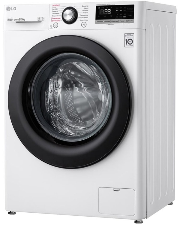 Особенности конструкции: направление открывания люка — влево, диаметр загрузочного люка — 35 см, угол открытия люка — 150°, регулируемые ножки, функция очистки барабана.