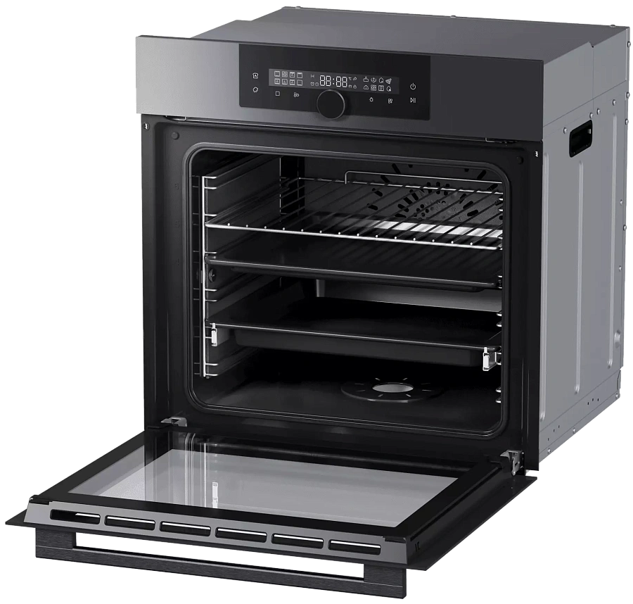 Духовой шкаф HOQ-F6QSN3DG имеет современную сенсорную панель управления с многофункциональным поворотным переключателем и встроенный парогенератор. Использование пара при запекании мяса, рыбы, овощей сделает блюда более сочными, а выпечку более пышной. Для выпечки хлеба вам нужно только запустить нужный вариант программы для целой буханки или для небольших булочек, и расстойка теста, а затем выпекание хлеба до готовности пройдет полностью в автоматическом режиме. Данная модель способна поддерживать температуру нагрева с точностью до одного градуса, что позволяет готовить даже на низких температурах от 30 градусов. Приготовление под вакуумом при низкой температуре активно используется профессионалами высокой кухни, а теперь эта функция стала доступна для использования дома: такой режим помогает максимально сохранить полезные вещества и при этом раскрыть вкус продукта. Максимальная температура нагрева этой духовки составляет 300 градусов, благодаря чему можно приготовить идеальную пиццу с сочной начинкой и хрустящей основой. Режим Airfry можно использовать для блюд с хрустящей корочкой и меньшим содержанием жира, как в аэрогриле. С духовым шкафом HOQ-F6QSN3DG ваши блюда выйдут на высочайший уровень, а специальная программа Аква очистки и каталитические панели на стенках духовки помогут легко поддерживать чистоту даже при частом использовании.