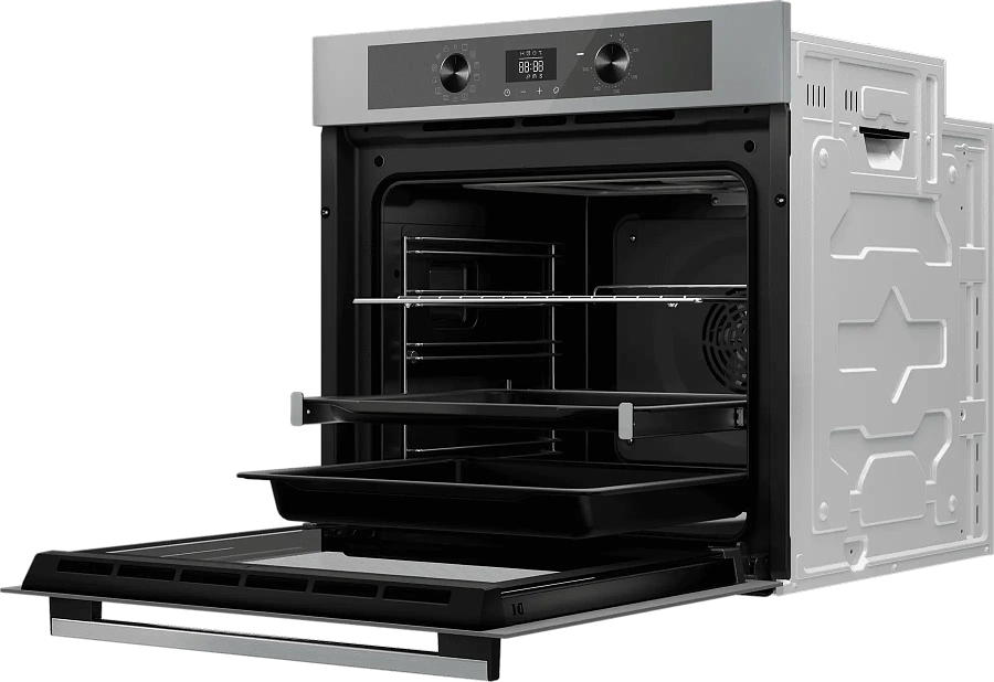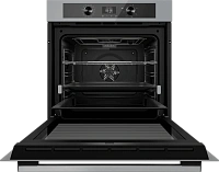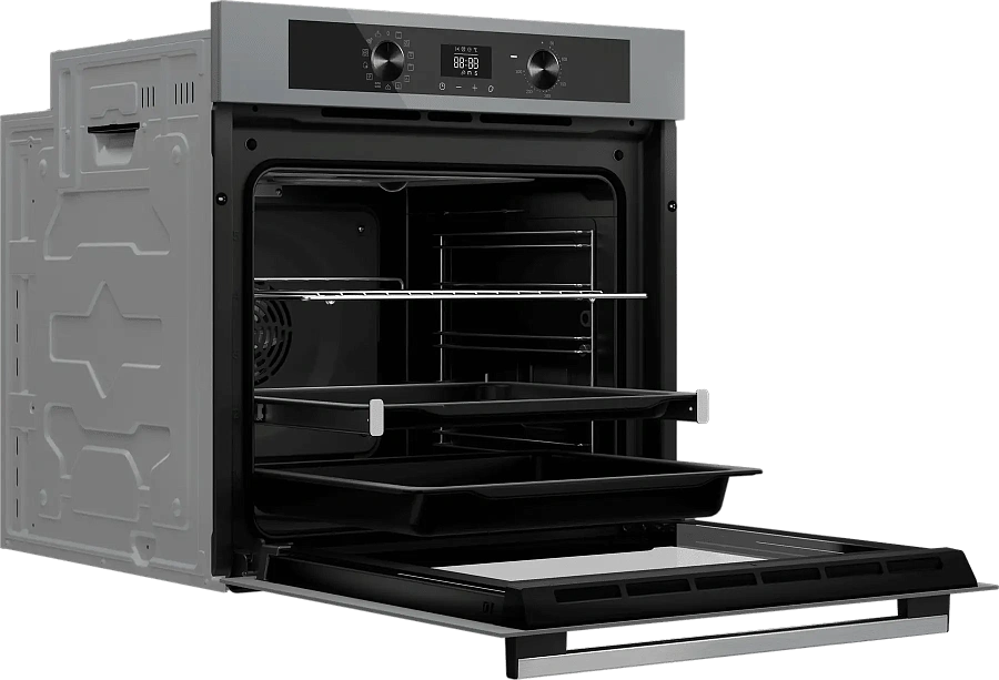 Духовой шкаф серии K3 HOQ-K3QSN5GG — это гармоничное сочетание передовой функциональности и элегантного дизайна. Модель с увеличенным объемом камеры 78 литров в трендовом сером цвете дополнена дверцей со специальной штриховкой на стекле, которая мягко рассеивает свет, делая дверцу менее прозрачной. Точность приготовления обеспечивают утапливаемые регуляторы, позволяющие выбрать один из 13 режимов нагрева, включая режимы для пиццы, аэрогриля, сушки, расстойки теста, а также режимы с использованием пара, что делает блюда из мяса, рыбы, овощей более сочными, а выпечку более пышной. Максимальная температура нагрева духовки достигает 300 градусов. Для повышения удобства использования духовой шкаф оснащен выдвижными телескопическими направляющими, каталитической самоочисткой задней стенки, функцией аква очистки, а также плавным закрыванием, обеспечивая комфорт и безопасность. Духовой шкаф HOQ-K3QSN5GG станет вашим надежным партнером для создания кулинарных шедевров.