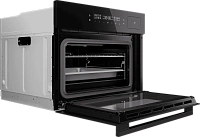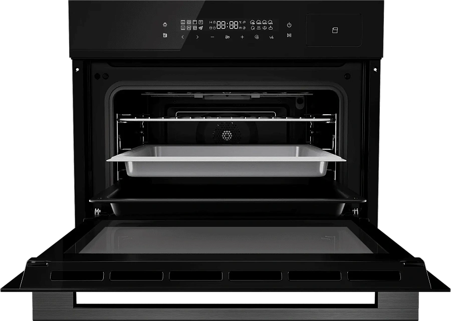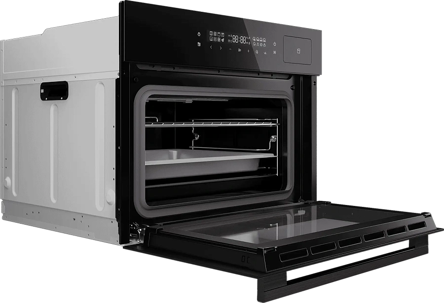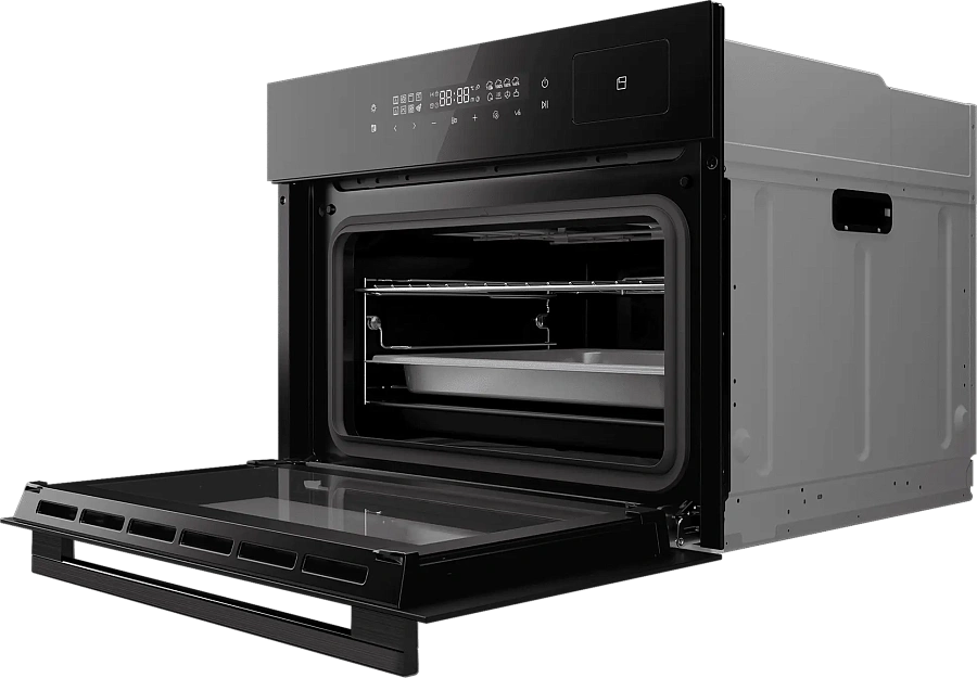 Компактный духовой шкаф Haier HOS-F5CVN8GB с парогенератором сочетает в себе преимущества духовки и пароварки в элегантном компактном корпусе. Управление осуществляется с помощью интуитивно понятной сенсорной панели, дающей доступ к широкому спектру режимов. Вы можете выбирать между тремя уровнями интенсивности пара (100%, 80%, 60%), традиционными режимами с конвекцией, а также специальными программами, включая «Аэрогриль», «Пицца», «Размораживание», «Ферментация» или «Регенерация» с помощью пара для готовых блюд. Особого внимания заслуживает профессиональный режим приготовления под вакуумом (Sous-Vide), позволяющий раскрыть натуральный вкус и сохранить максимум полезных веществ в продуктах. Точное поддержание температуры с шагом в один градус позволяет готовить изысканные блюда даже при низких температурах от 30 градусов, что открывает неограниченные возможности для кулинарных экспериментов. Эта духовка создана для легкости на каждом этапе: от быстрого предварительного разогрева и удобства автоматического отключения в установленное время, до возможности пошагового программирования до трех этапов приготовления и сохранения любимых рецептов в памяти. Haier HOS-F5CVN8GB — ваш интеллектуальный помощник для здорового питания и кулинарного творчества.