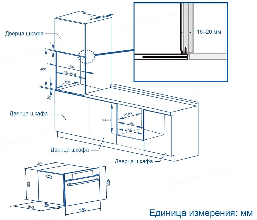 - Размер ниши для встраивания, ШхГхВ (см): 56 х 58 х 46
