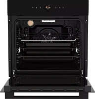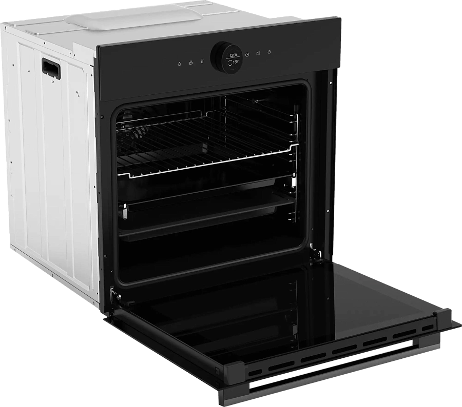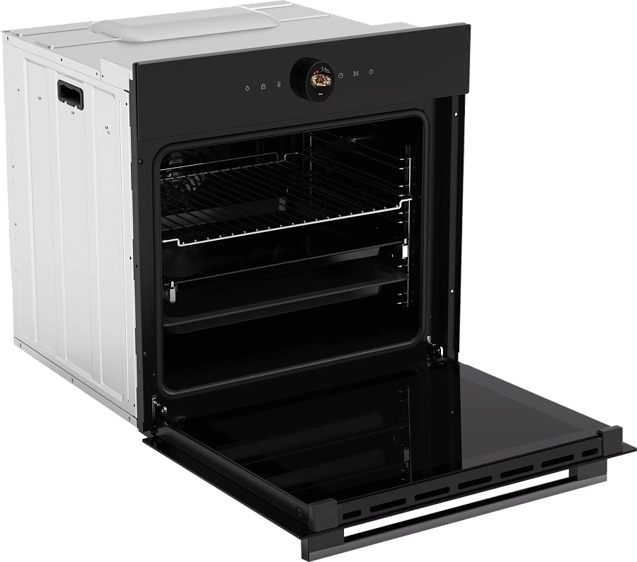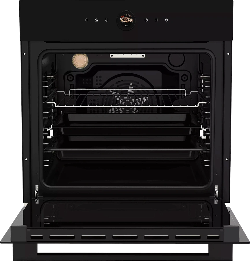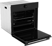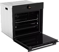 Духовой шкаф HOX-TFT6AMTB оснащен сенсорной панелью управления и центральным поворотным переключателем с многофункциональным TFT дисплеем. Доступны 2 режима работы дисплея — черно-белый с крупными символами или цветной русифицированный режим. Максимальная температура нагрева составляет 310 градусов, , благодаря чему можно приготовить идеальную пиццу с сочной начинкой и хрустящей основой. Духовой шкаф оборудован выдвижными телескопическими направляющими, функцией аква очистки и тройным остеклением дверцы, что делает использование комфортным и безопасным.