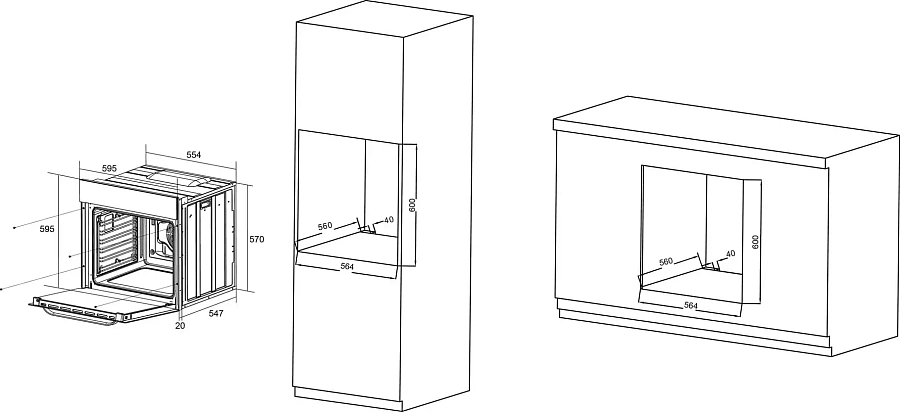 - Размер ниши для встраивания, ШхГхВ (см): 56.4 x 56 x 60