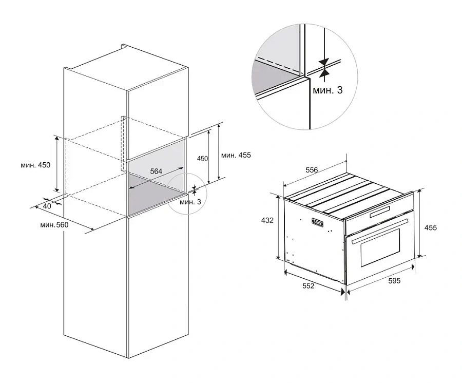 • Размер ниши для встраивания, ШхГхВ (см): 56.4 x 56 x 45