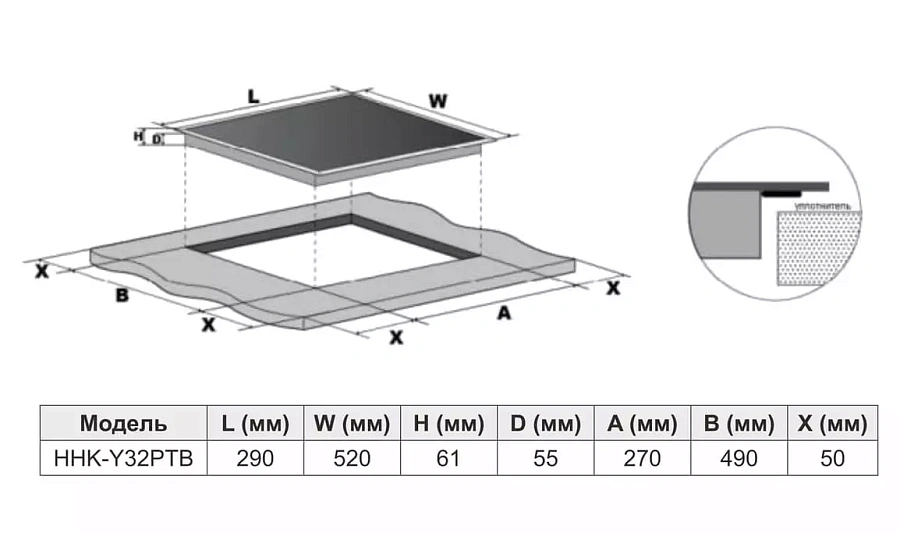 Индукционная варочная поверхность HHK-Y32PTB позволит сэкономить драгоценное место на кухне, ширина этой панели всего 29 см. Модель оснащена сенсорным управлением с 9 уровнями мощности нагрева, функцией распознавания посуды, а также таймером для автоматического отключения нагрева по истечении установленного времени.