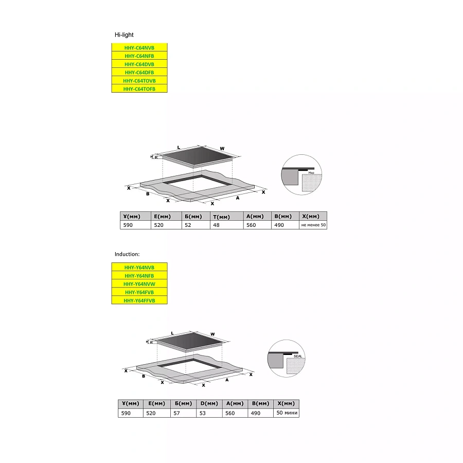 • Размеры ниши для встраивания (ШхГ) (см): 56 x 49