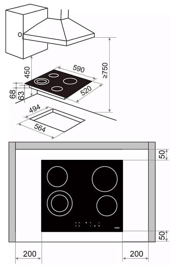 - Размеры ниши для встраивания (ШхГ) (см): 56.4 x 49.4