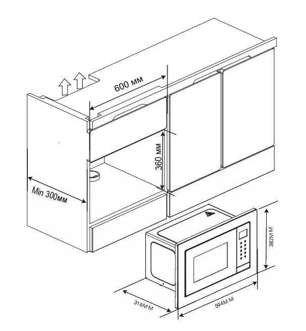 - Размер ниши для встраивания (В x Ш x Г), мм: 360 х 560 х 300