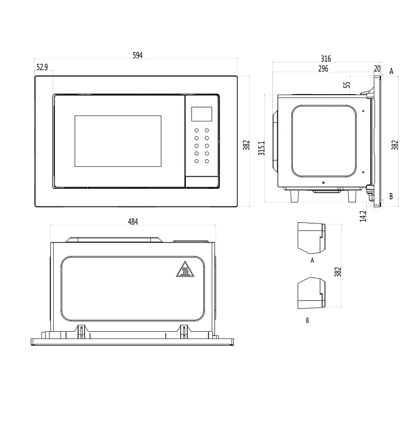Микроволновая печь с грилем HMX-BTG207X подходит для встраивания в верхние полки кухонной мебели. Глубина корпуса этой модели составляет всего 30 см. Сенсорная панель управления с белыми индикаторами и цифровым дисплеем придает модели стильный и лаконичный внешний вид. Широкий выбор режимов и автопрограммы размораживания и приготовления позволят быстро и эффективно подогреть или приготовить ваше блюдо.